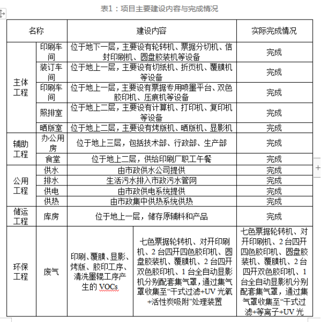 長治市票證印刷廠票證印刷項目,位于長治市城西北路55號國稅大廈院內,主要產品為卷式發票、平推式發票、手工發票、門票、信封、書刊的印刷。2018年12月委托中農康大生態環境科技有限公司編制完成環評文件,2019年1月31日長治高新區行政審批局以長高行審函[2019] 4號文對該項目予以批復。 根據環評文件及其批復要求,項目配套環保措施已于2019年6月建設完成,具體環保措施見表1: